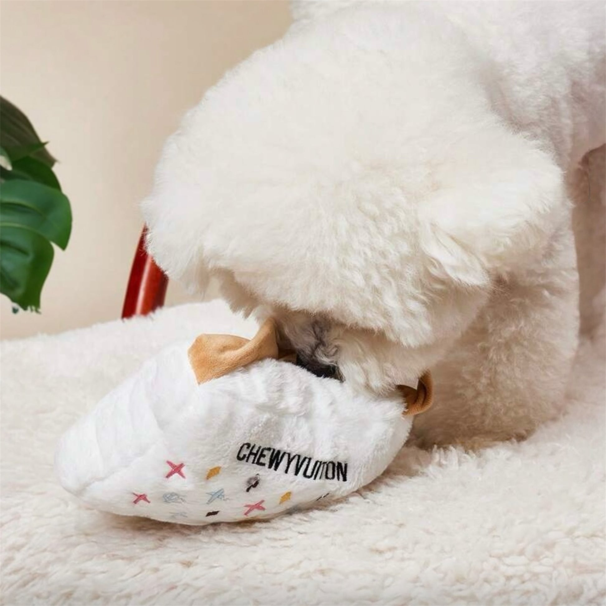Luxury vibes, dog-approved! This ChewyVuiton bag-shaped toy is a playful parody that brings high-fashion fun to your dog’s toy collection.